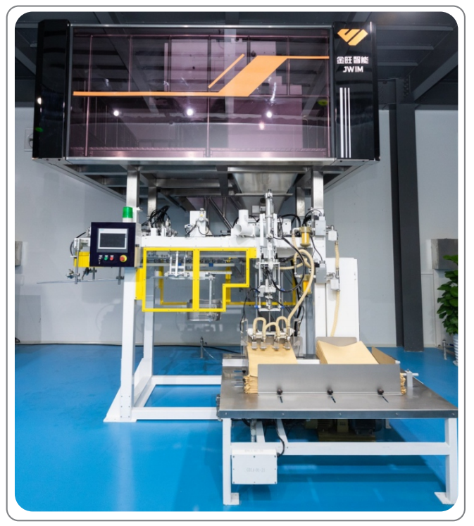 Pick bag--opening bags--get the bag--filling--stacking--bag sealing (heating/sewing/ heating and sewing)--the finished product conveying.